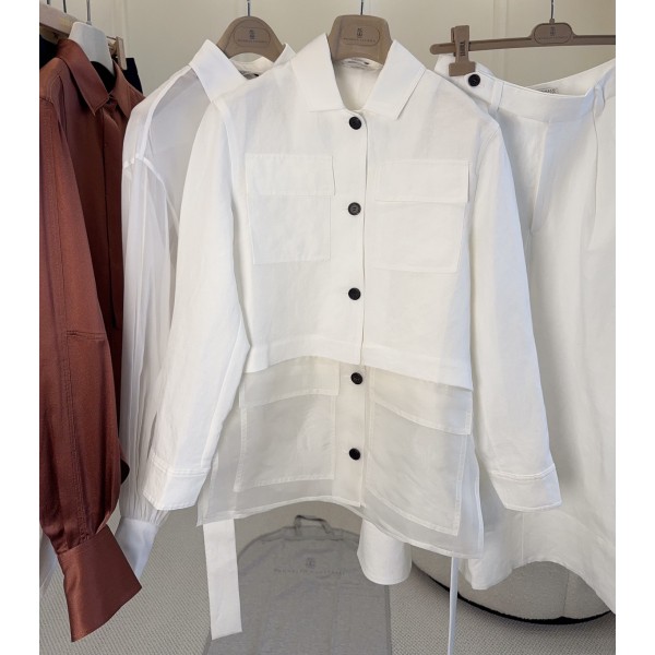BC 2026 봄여름 신상 화이트 린넨 패치 셔츠 코트 + 치마 린넨 혼방 소재로 통기성이 뛰어나고 편안하며 가짜 투피스 패치 디자인 + 블랙 버튼 심플하면서도 층감 있는 멀티포켓 카고풍으로 실용적이면서도 스타일리쉬한 BF핏에 나른한 캐주얼룩 기장이 딱 맞아서 한 벌로도 고급스럽고 청바지, 반바지에 모두 잘 어울리며 캐주얼하고 스타일리쉬함