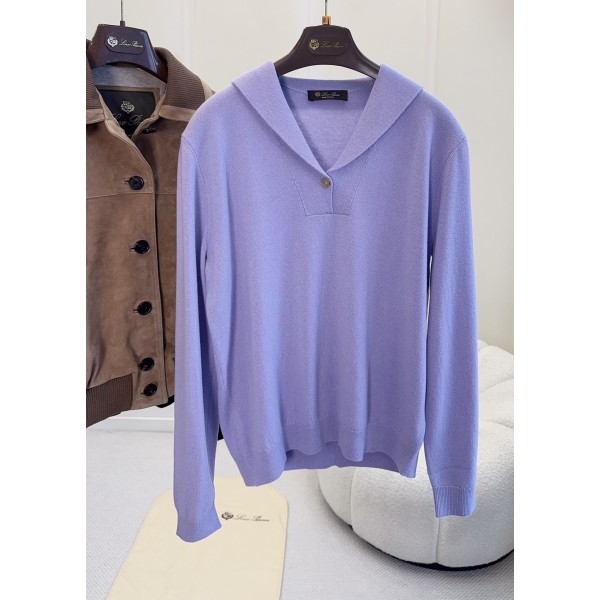Loro Piana 2026 신상 아이스 퍼플 세일러 칼라 스웨터 100% 캐시미어 소재로 부드럽고 피부에 친화적이며 가볍고 보온성이 높은 올과 높은 꼬임 실로 고르게 건조되고 보풀에 강하며 내구성이 뛰어나고 고급스러움 세일러칼라+황소뿔 버클로 심플하고 세련된 세미 루즈핏 단품이나 이너 모두 OK, 날씬해 보이면서 코디하기 좋아요 통근, 일상, 럭셔리한 장소에서도 부담없이 소화가능, 우아함 만점