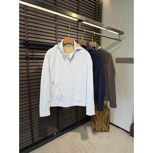 BC 2026SS 신상 후드 점퍼 맞춤형 친환경 바람막이 재킷 원단을 사용하여 부드럽고 찰진 피부, 주름 방지 기능이 뛰어나며 차이나칼라로 접을 수 있는 후드 디자인 비즈니스와 레저 겸용, 수입 하드웨어와 부자재를 제공하여 고급스러움이 가득하며 깔끔한 디자인으로 절제되고 럭셔리함 다양한 상황에 어울리는 재킷 코트