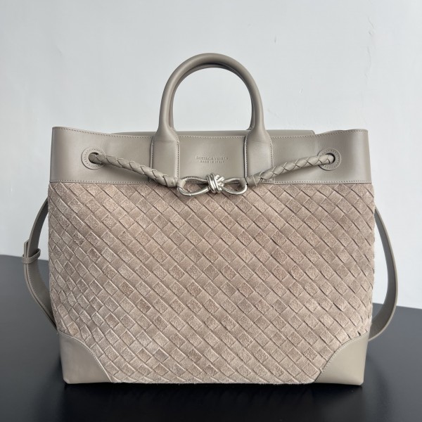 BV 신상 Andiamo 보이저 모델번호 827066 스웨이드 가죽 가볍고 실용적이며 스타일리쉬함 여유로운 비즈니스룩, 스웨이드 소재와 매끄러운 가죽을 시각적으로 대비시켜 디자인적인 레이어드감을 더했으며 슬립 가능한 금속 끈 버클을 매치하여 심플한 가방으로 세련된 디테일을 드러냈으며 안감 용량이 커서 일상 속 모두 수납가능해 주말여행의 고민 해결 직장의 세련된 슈트나 데일리 캐주얼에도 잘 어울리는 아이템 사이즈: 43*39*20cm