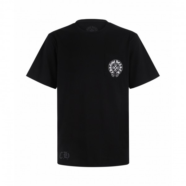 크롬하츠 마이애미 한정판 티셔츠 맞춤 제작된 벨벳 저지 모직 원단의 부드럽고 섬세한 밀착으로 클래식한 블랙 컬러가 고급스러운 화이트 라인을 선사하며 앞부분 십자화 토템이 가슴에 정교하게 포인트 되어있는 스티커 펄프 인쇄를 사용하여 필름 스크린을 세 번 수정하고 펄프 액체 페인트를 사용하여 직물에 패턴을 인쇄하고 직물을 굽고 인쇄 패턴을 고정